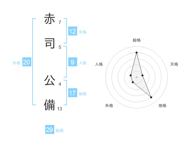 赤司 公備さんの総格は29画の4点!
