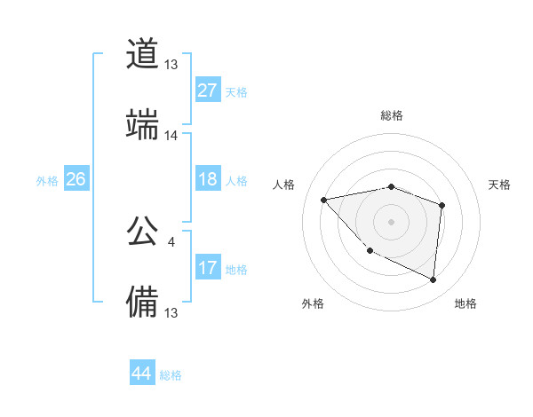 道端 公備さんの総格は44画の2点!