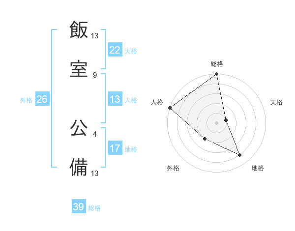 飯室 公備さんの総格は39画の5点!