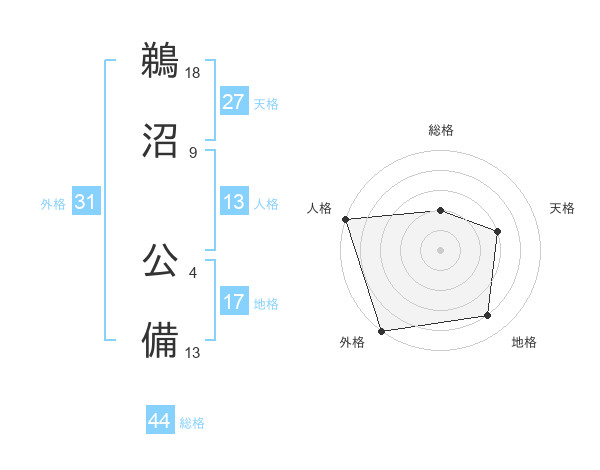 鵜沼 公備さんを姓名の画数から五運を鑑定
