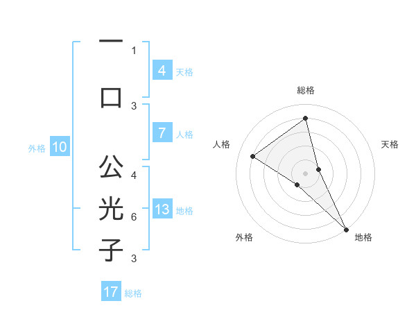 一口 公光子さんの総格は17画の4点!