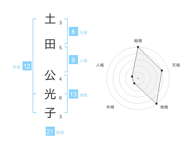 土田 公光子さんの総格は21画の5点!