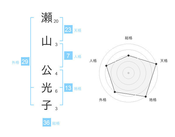 瀬山 公光子さんの天格は23画の5点!