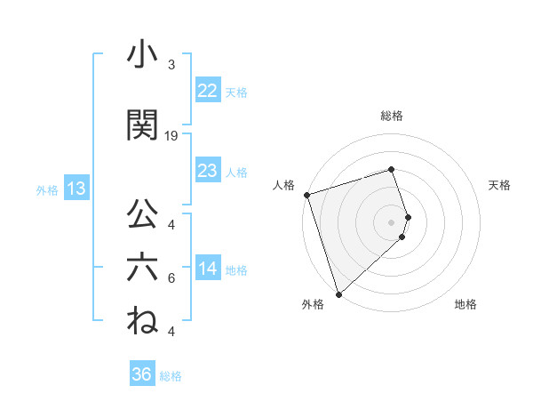 小関 公六ねさんの外格は13画の5点!