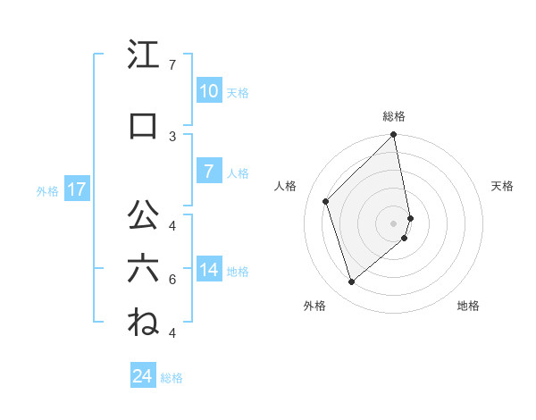 江口 公六ねさんを姓名の画数から五運を鑑定