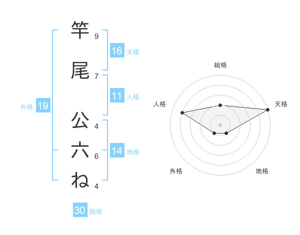 竿尾 公六ねさんを姓名の画数から五運を鑑定