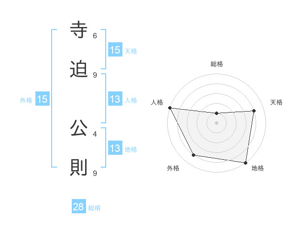 寺迫 公則さんの天格は15画の4点!