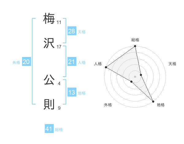 梅沢 公則さんの総格は41画の5点!