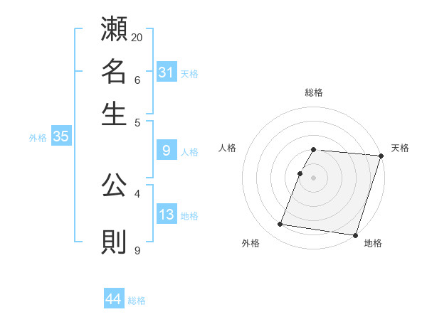 瀬名生 公則さんを姓名の画数から五運を鑑定