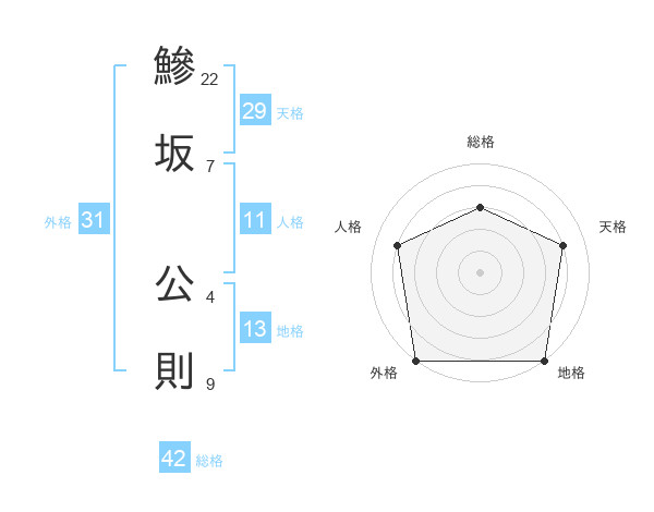 鰺坂 公則さんの地格は13画の5点!