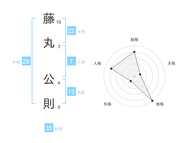 藤丸 公則さんの総格は35画の4点!