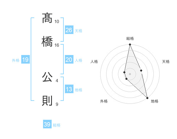 髙橋 公則さんの天格は26画の2点!