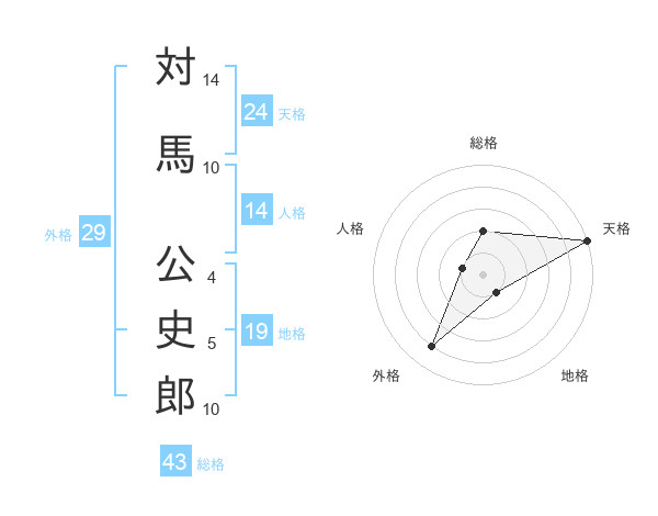 対馬 公史郎さんを姓名の画数から五運を鑑定