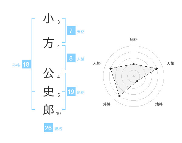小方 公史郎さんを姓名の画数から五運を鑑定
