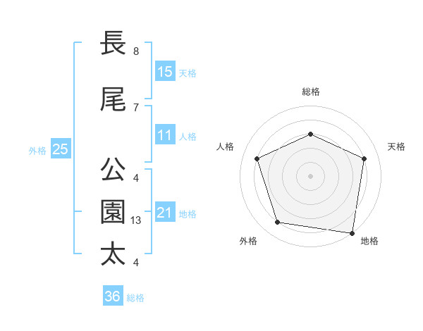 長尾 公園太さんの総格は36画の3点