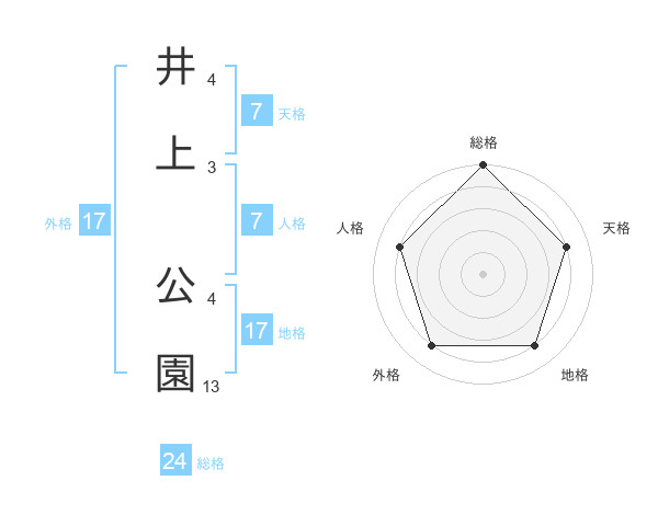 井上 公園さんの総格は24画の5点!