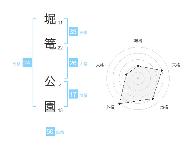 堀篭 公園さんを姓名の画数から五運を鑑定