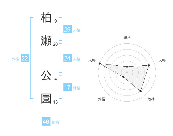 柏瀬 公園さんの総格は46画の1点!