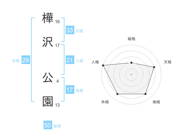 樺沢 公園さんを姓名の画数から五運を鑑定