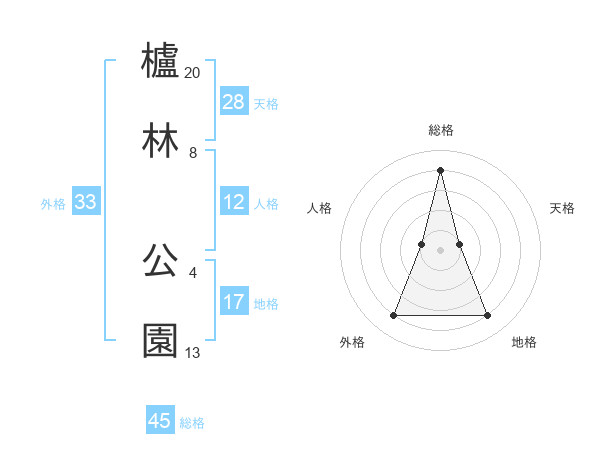 櫨林 公園さんの総格は45画の4点!