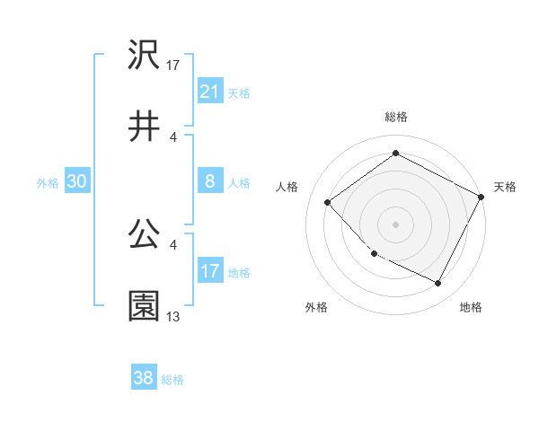 沢井 公園さんの総格は38画の4点!