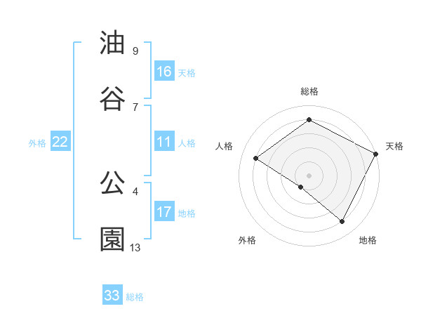 油谷 公園さんの総格は33画の4点!