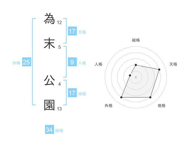 為末 公園さんの地格は17画の4点!
