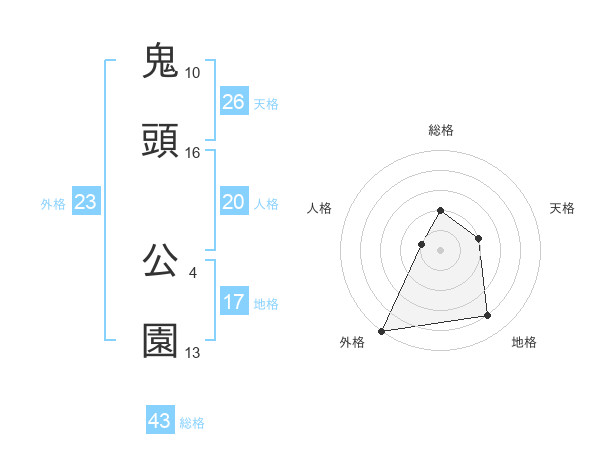 鬼頭 公園さんを姓名の画数から五運を鑑定