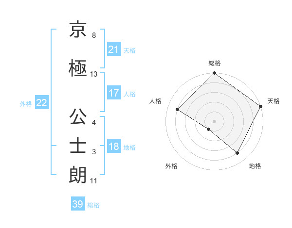 京極 公士朗さんを姓名の画数から五運を鑑定