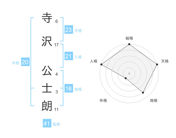 寺沢 公士朗さんの天格は23画の5点!