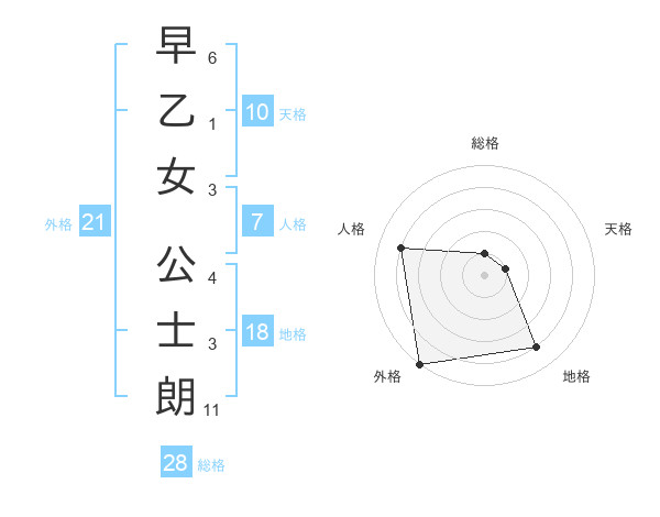 早乙女 公士朗さんの総格は28画の1点!