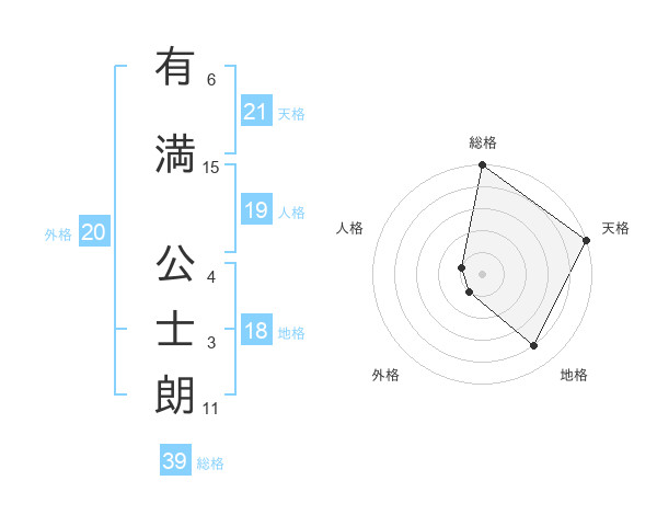 有満 公士朗さんを姓名の画数から五運を鑑定