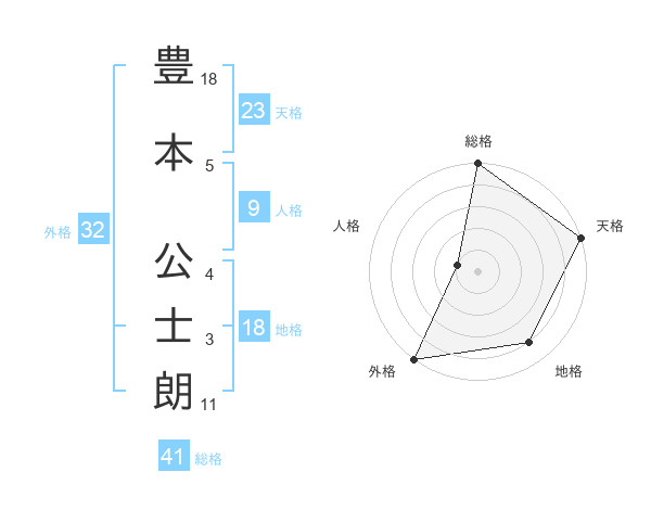 豊本 公士朗さんを姓名の画数から五運を鑑定