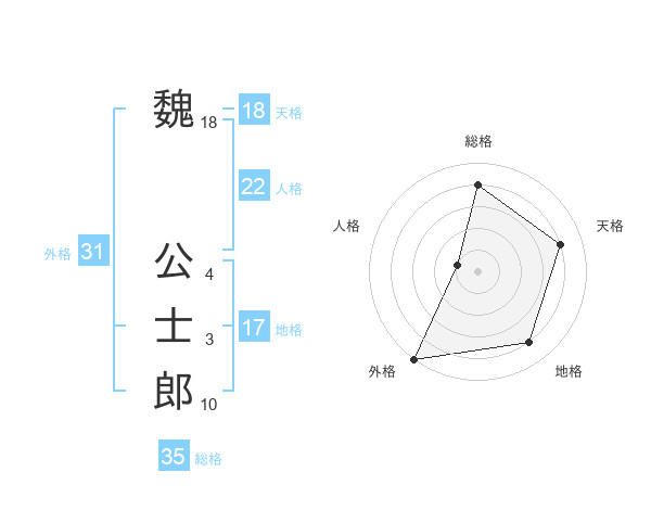 魏 公士郎さんを姓名の画数から五運を鑑定