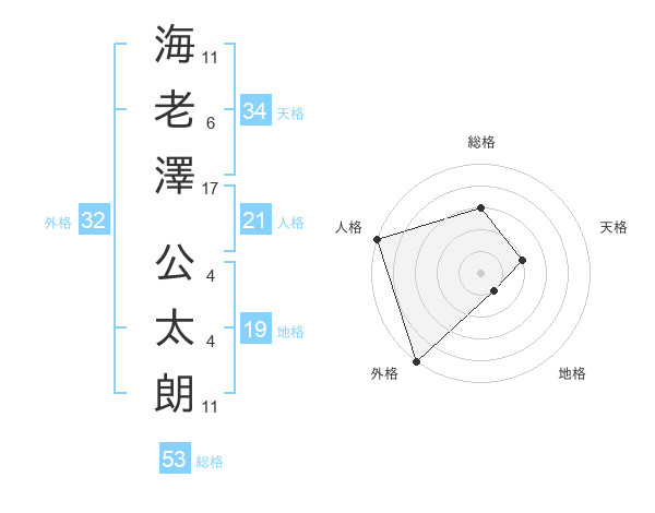 海老澤 公太朗さんを姓名の画数から五運を鑑定
