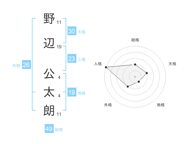 野辺 公太朗さんの総格は49画の2点!