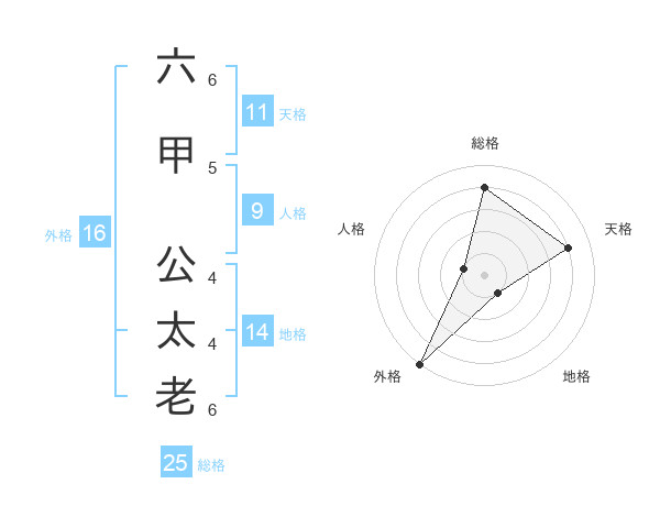 六甲 公太老さんの外格は16画の5点!