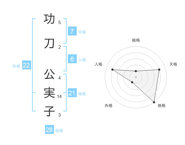 功刀 公実子さんの外格は22画の1点!
