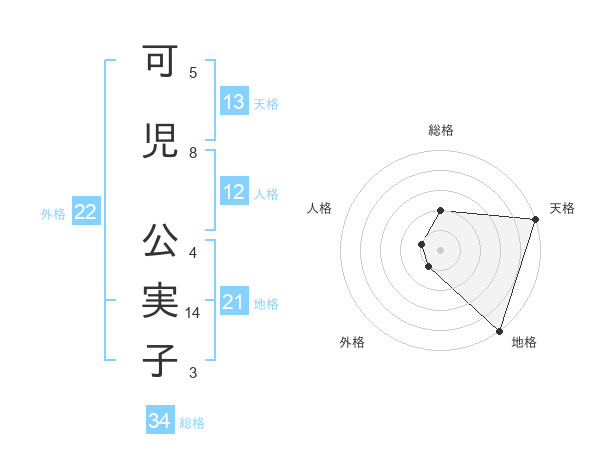 可児 公実子さんの天格は13画の5点!