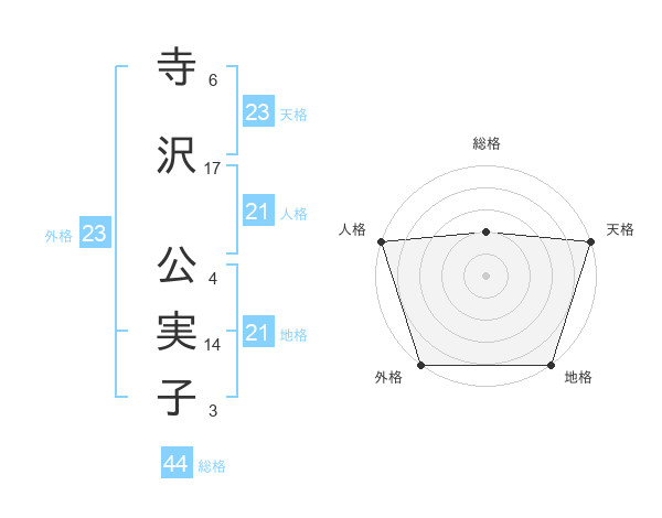 寺沢 公実子さんを姓名の画数から五運を鑑定