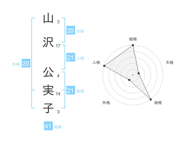 山沢 公実子さんを姓名の画数から五運を鑑定