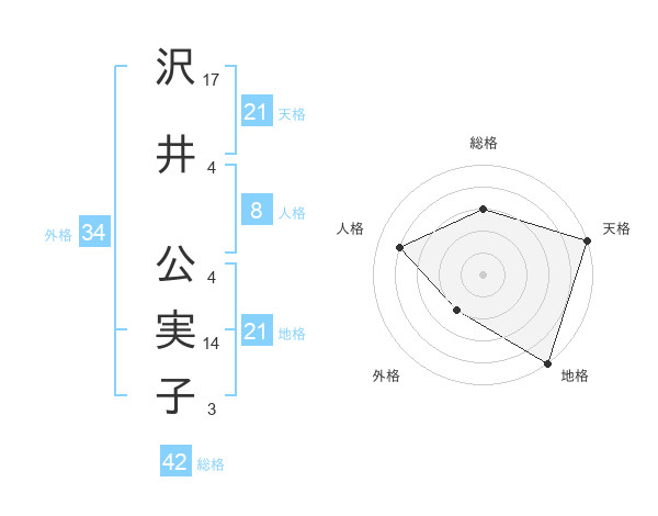 沢井 公実子さんを姓名の画数から五運を鑑定