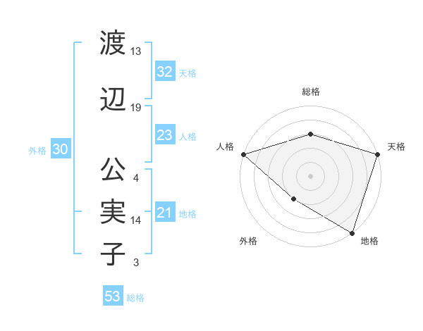 渡辺 公実子さんを姓名の画数から五運を鑑定