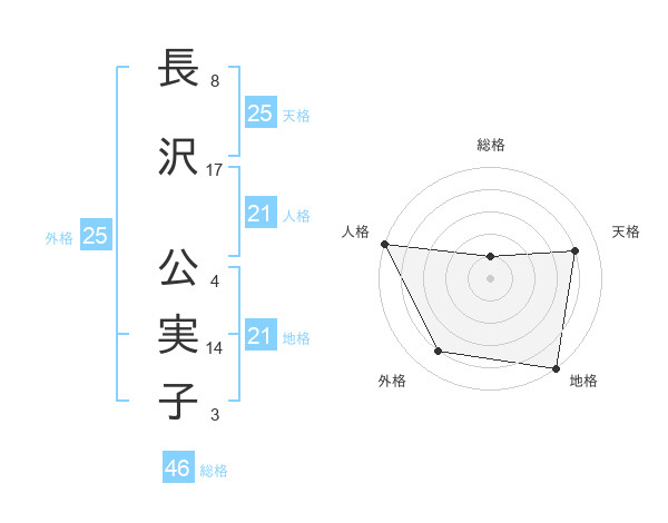 長沢 公実子さんを姓名の画数から五運を鑑定
