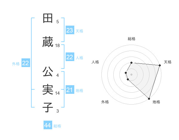 田蔵 公実子さんを姓名の画数から五運を鑑定