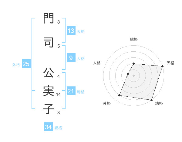 門司 公実子さんの天格は13画の5点!