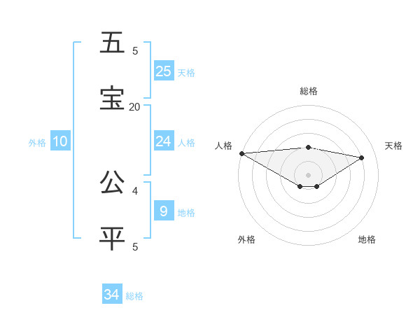 五宝 公平さんの外格は10画の1点!