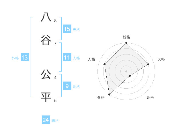八谷 公平さんの総格は24画の5点!