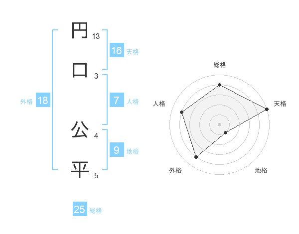 円口 公平さんの天格は16画の5点!