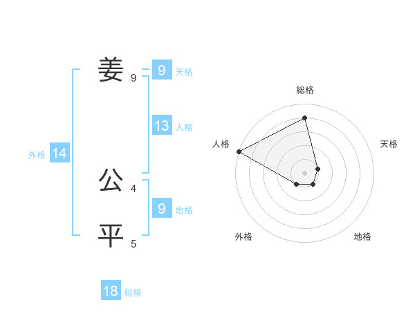 姜 公平さんの総格は18画の4点!
